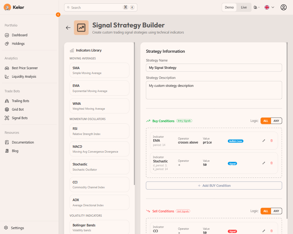 Many exchanges lack essential risk management and automation tools. Kelor fills these gaps with strategy automation features that help you trade smarter and safer.